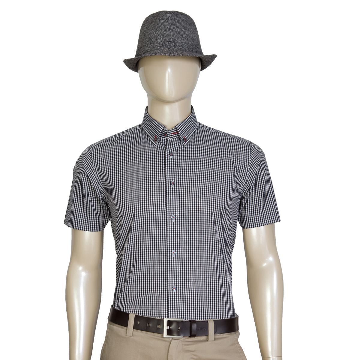 藍河夏季新品男士格子襯衫短袖修身商務休閑襯衣男半袖