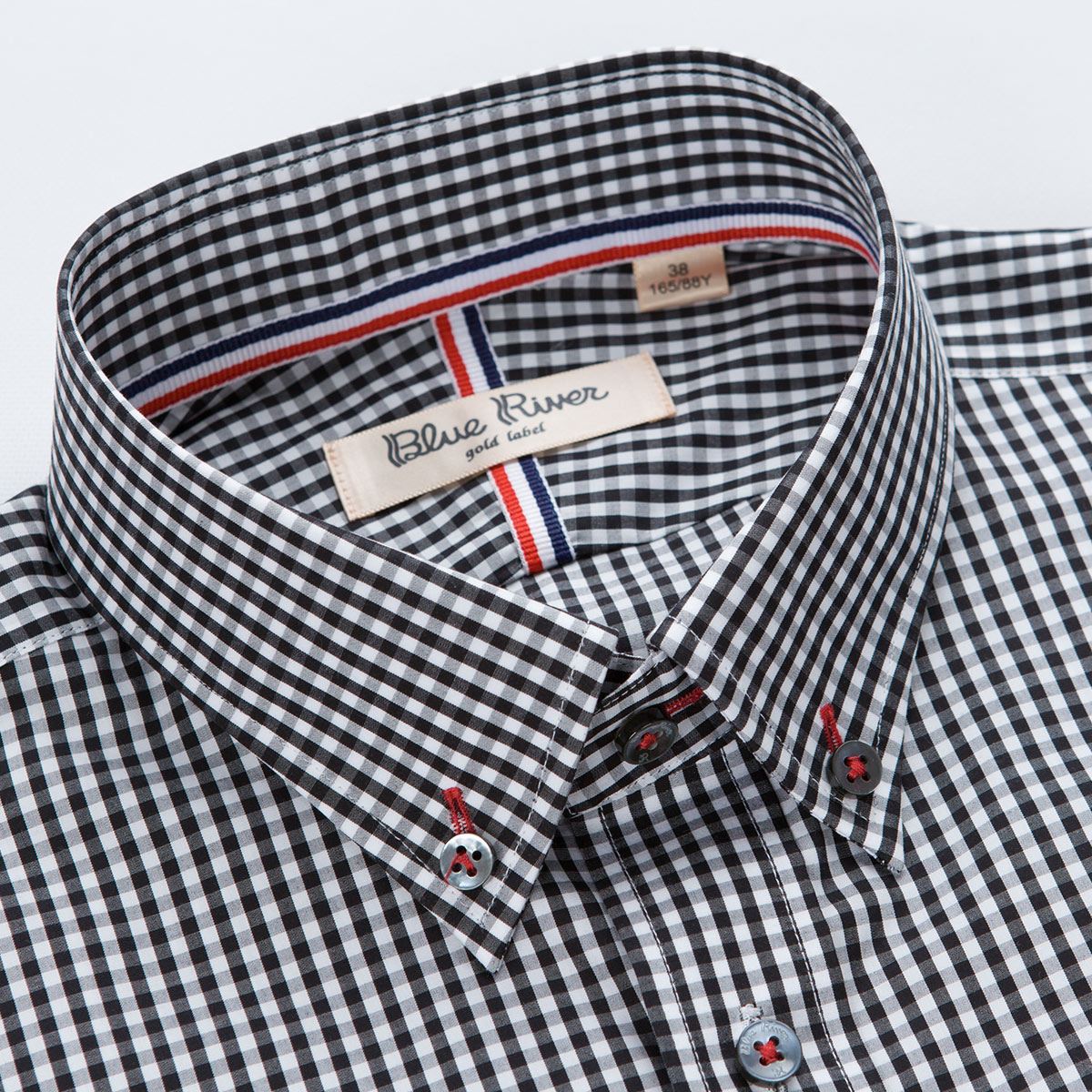 / 藍河夏季新品男士格子襯衫短袖修身商務休閑襯衣男半袖