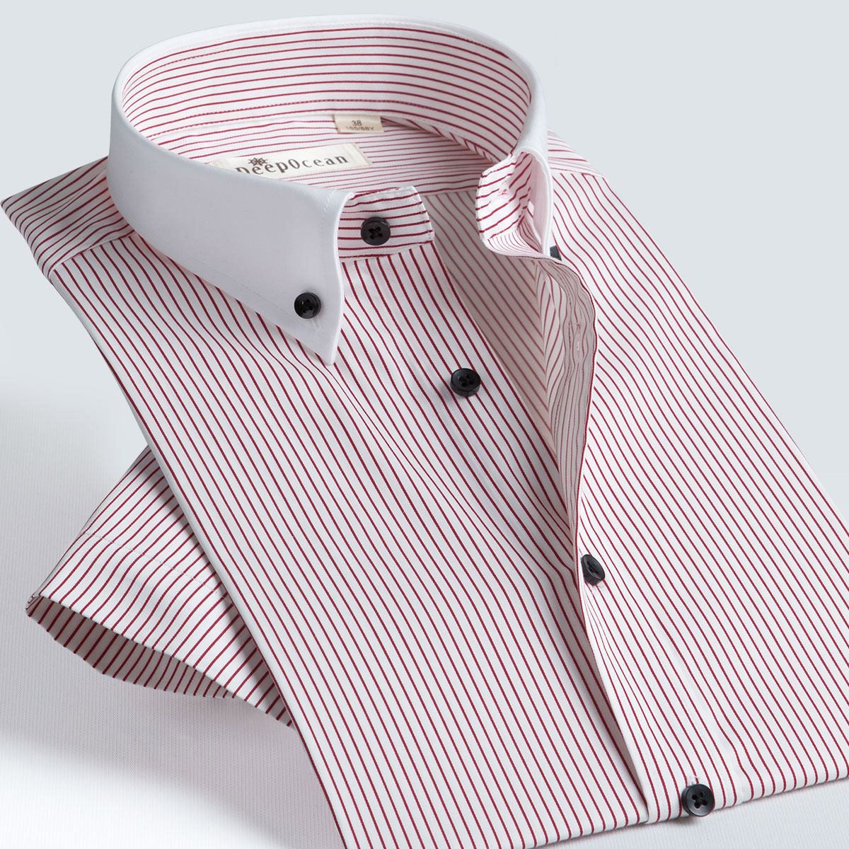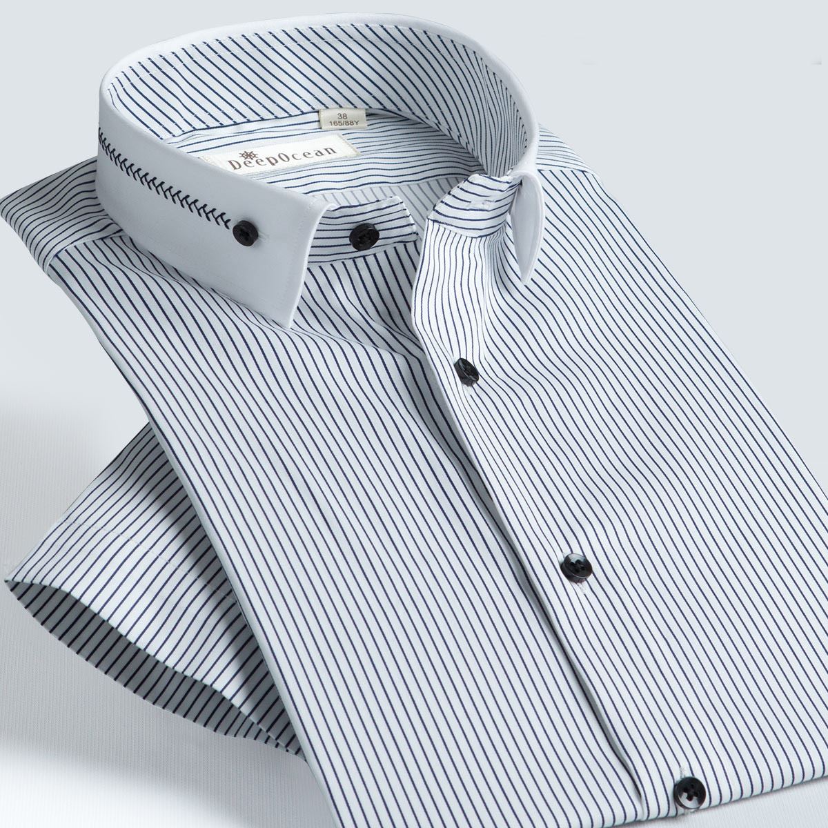 / 深海夏季中年男短袖襯衫彈力棉修身免燙商務條紋休閑半袖男式襯衫