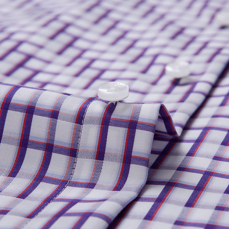 BLUE RIVER/藍河紫色格子短袖男襯衫純棉商務休閑襯衣男時尚潮流