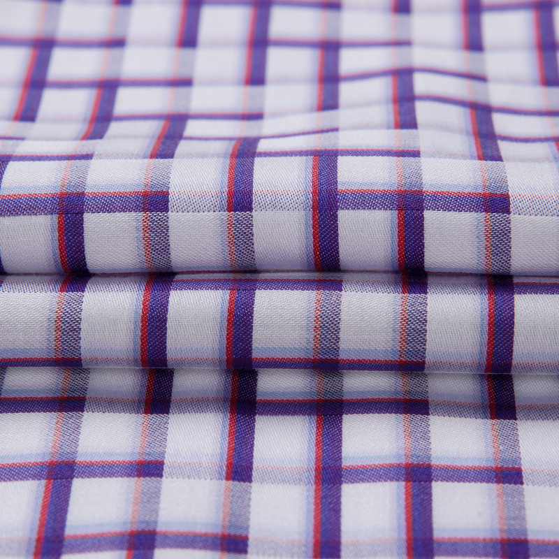 / BLUE RIVER/藍河紫色格子短袖男襯衫純棉商務休閑襯衣男時尚潮流
