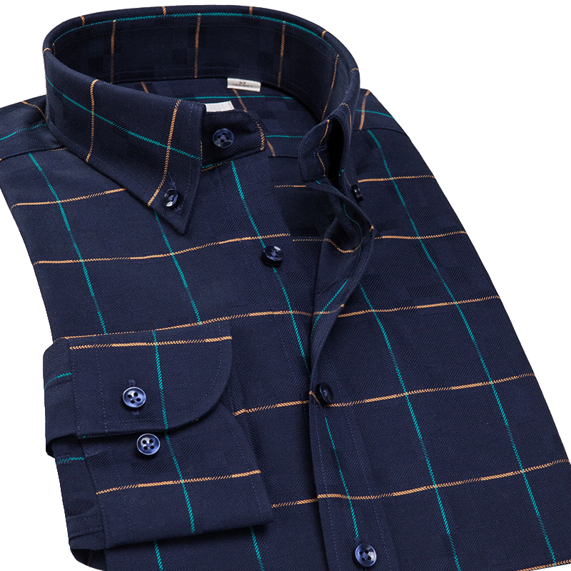 秋季大格子襯衫男長袖韓版修身時尚休閑襯衣免燙格紋青年日常寸衫