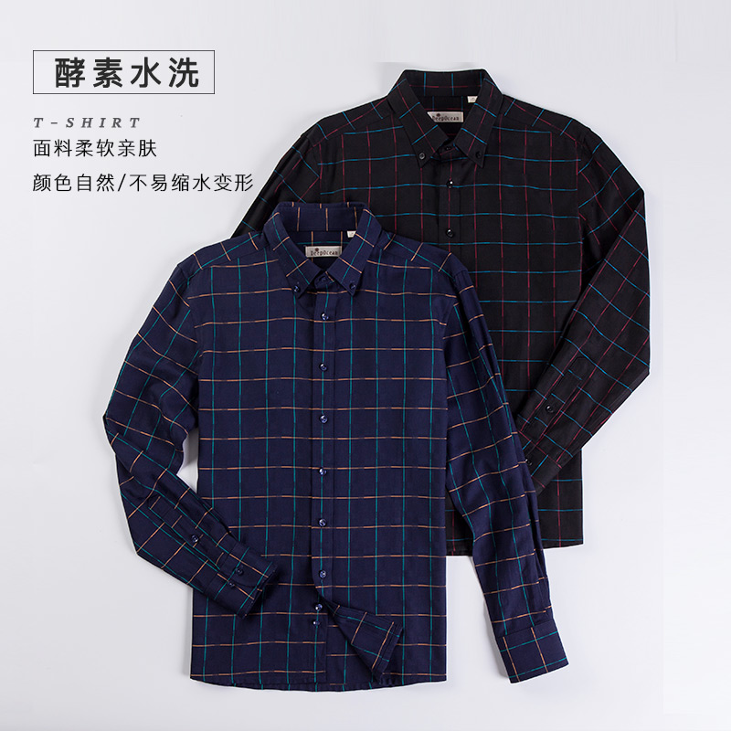 / 秋季大格子襯衫男長袖韓版修身時尚休閑襯衣免燙格紋青年日常寸衫