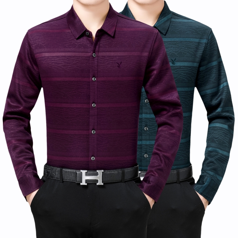 / 花花公子正品中年男士長袖羊絨保暖襯衫商務男裝加絨加厚條紋襯衣