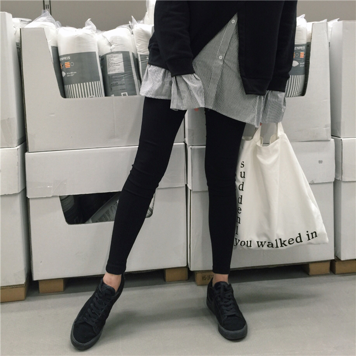 簡約基礎的鉛筆打底褲型,彈力很足很包裹,上身極其顯瘦