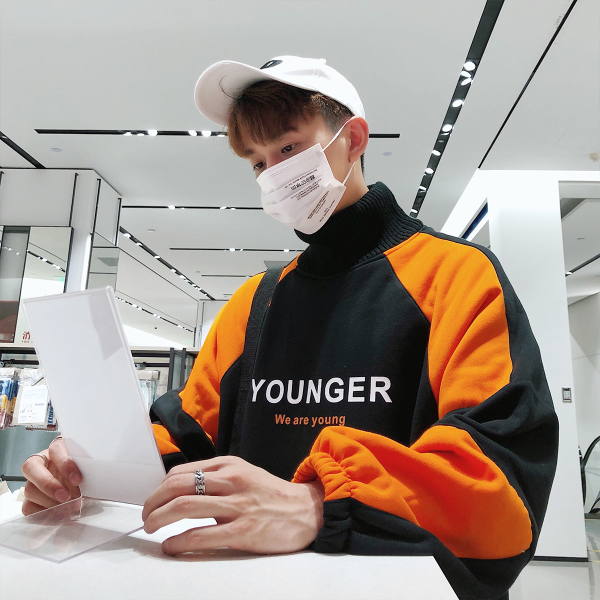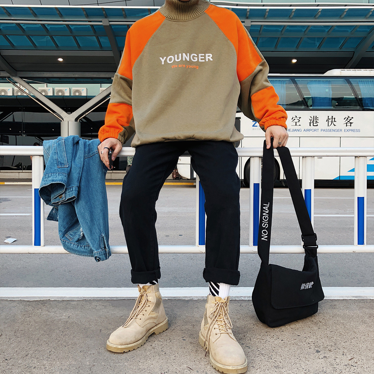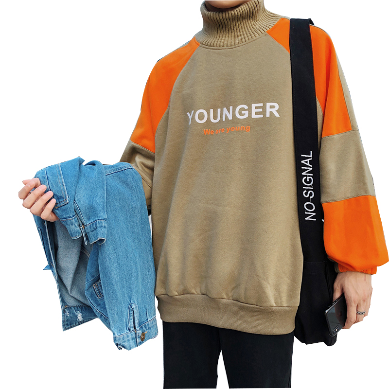 文藝男女店潮流拼色秋季男士針織衫韓版寬松高領毛衣精神小伙外套