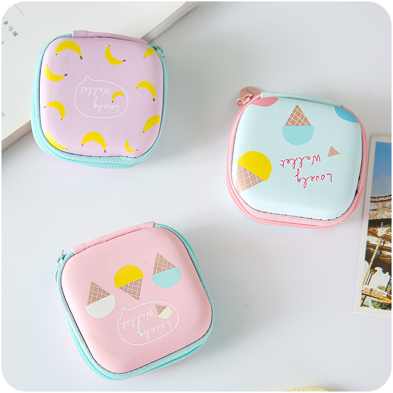 / 創意可愛韓版小方包便捷迷你硬幣耳機包學生小清新印花收納零錢包