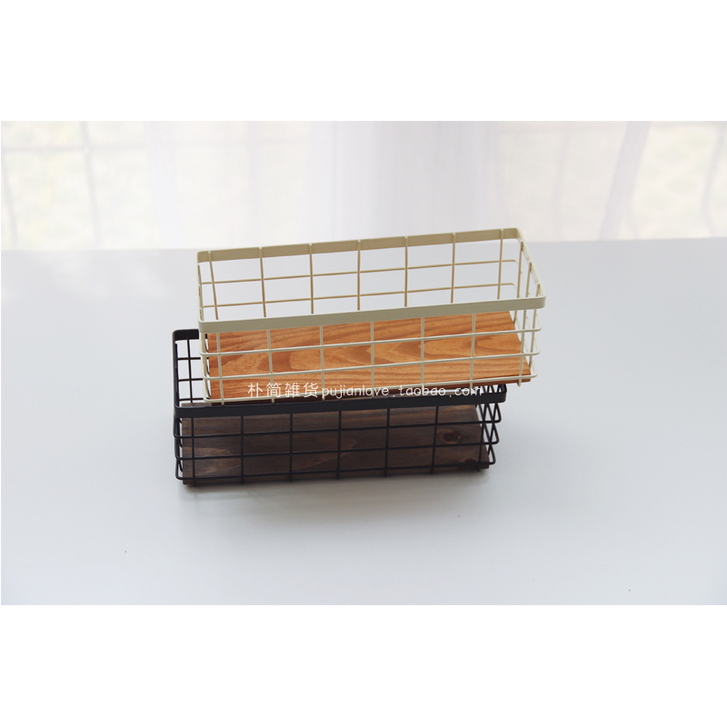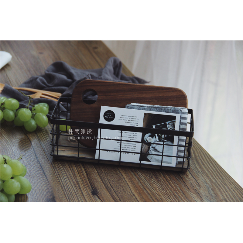 樸簡 日式復古鐵藝提手收納籃子筐桌面方形收納置物籃 桌面收納盒