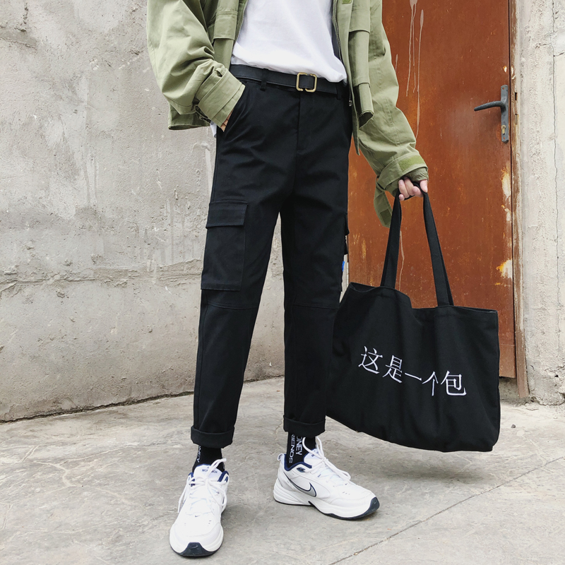 / 文藝男女店潮流街頭褲子男士秋季韓版古著工裝褲寬松直筒褲男褲