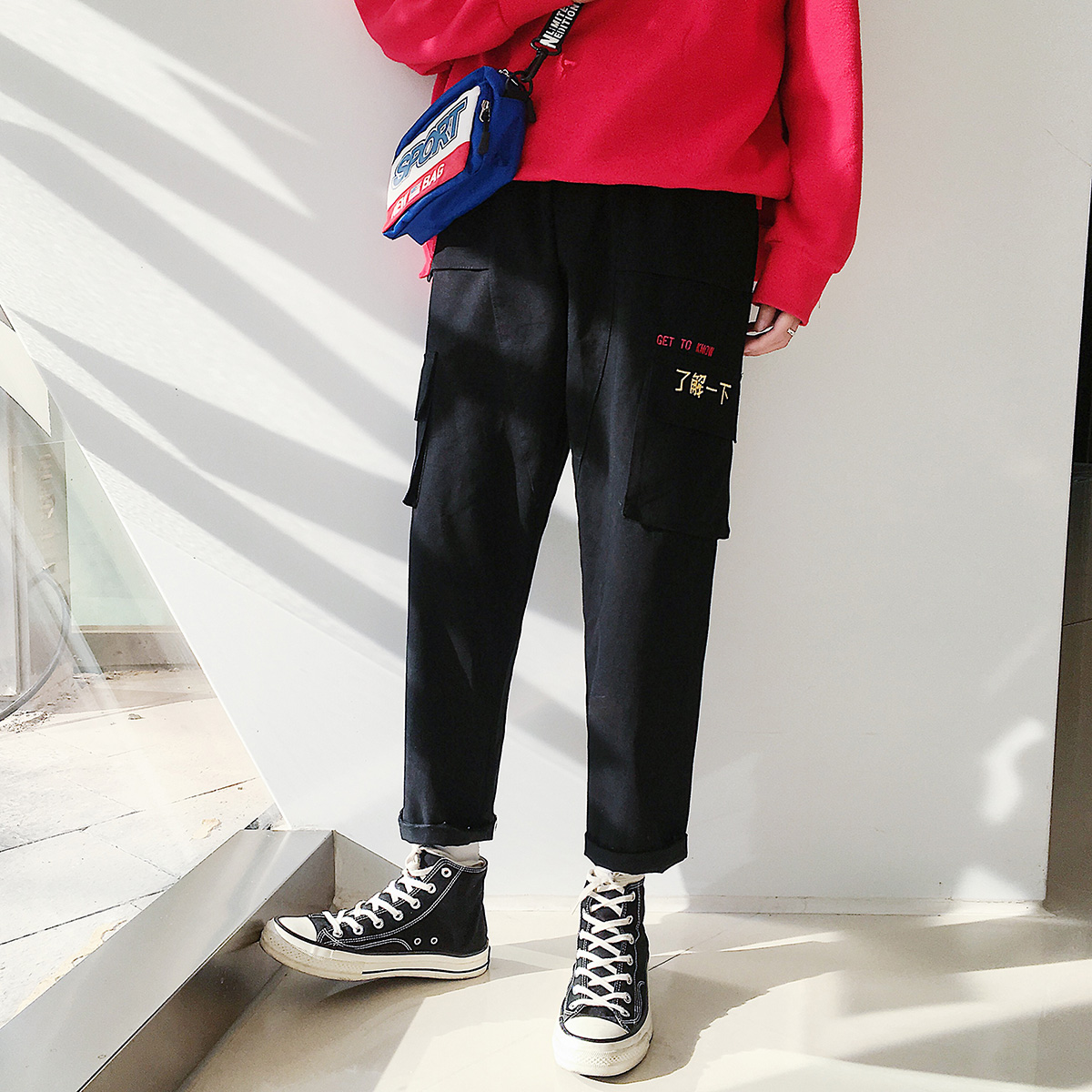 / 文藝男女店百搭潮牌男士休閑褲秋季韓版褲子男新款潮流九分褲男褲