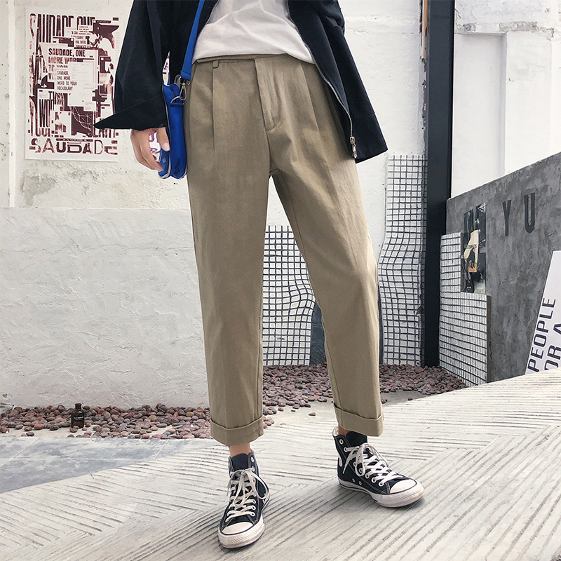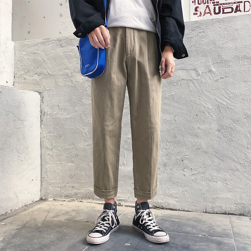 / 文藝男女店秋裝青少年潮流休閑褲韓版寬松男士九分褲秋季日系褲子