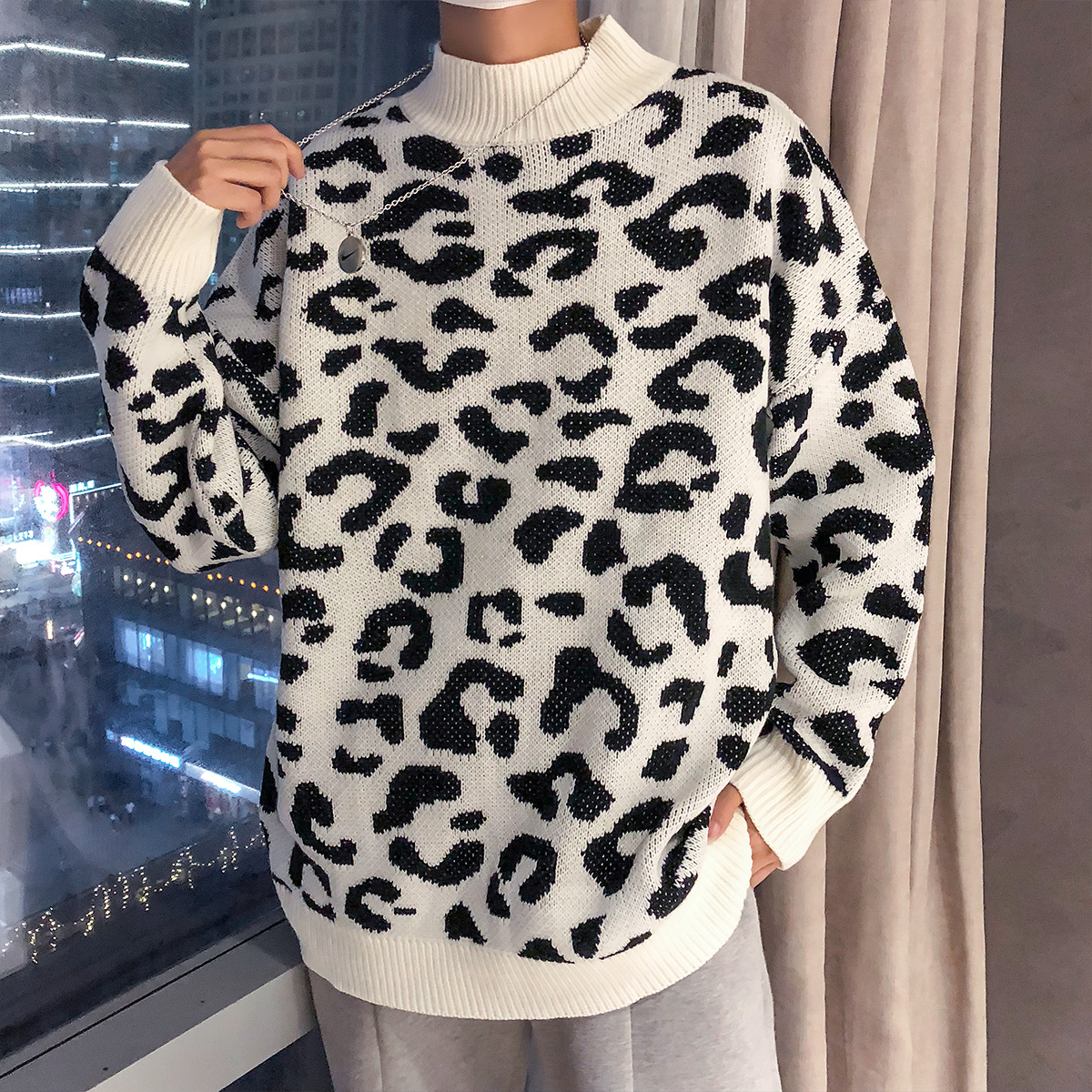 / 文藝男女店半高領男士毛衣精神小伙秋季針織衫外套韓版潮流情侶裝