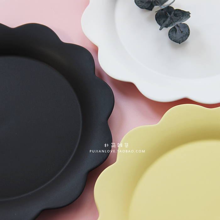 / 樸簡 日式純色花邊啞光磨砂8寸陶瓷餐具盤子 早餐碟拍攝道具