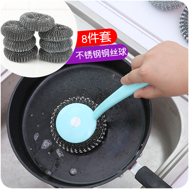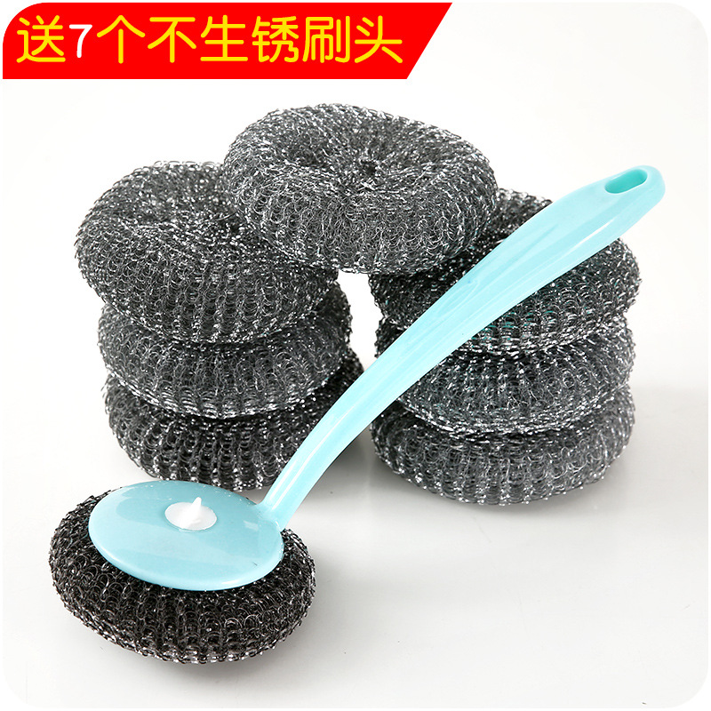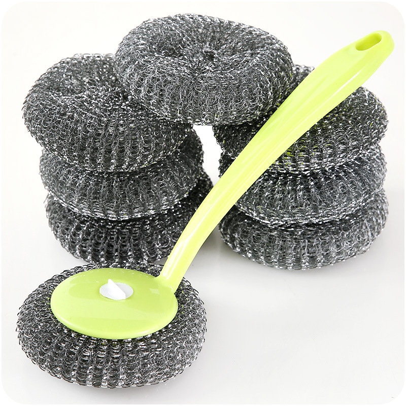 居家彩色長柄洗鍋刷廚房帶柄鋼絲球洗碗刷子鍋刷清潔用品掛可拆洗