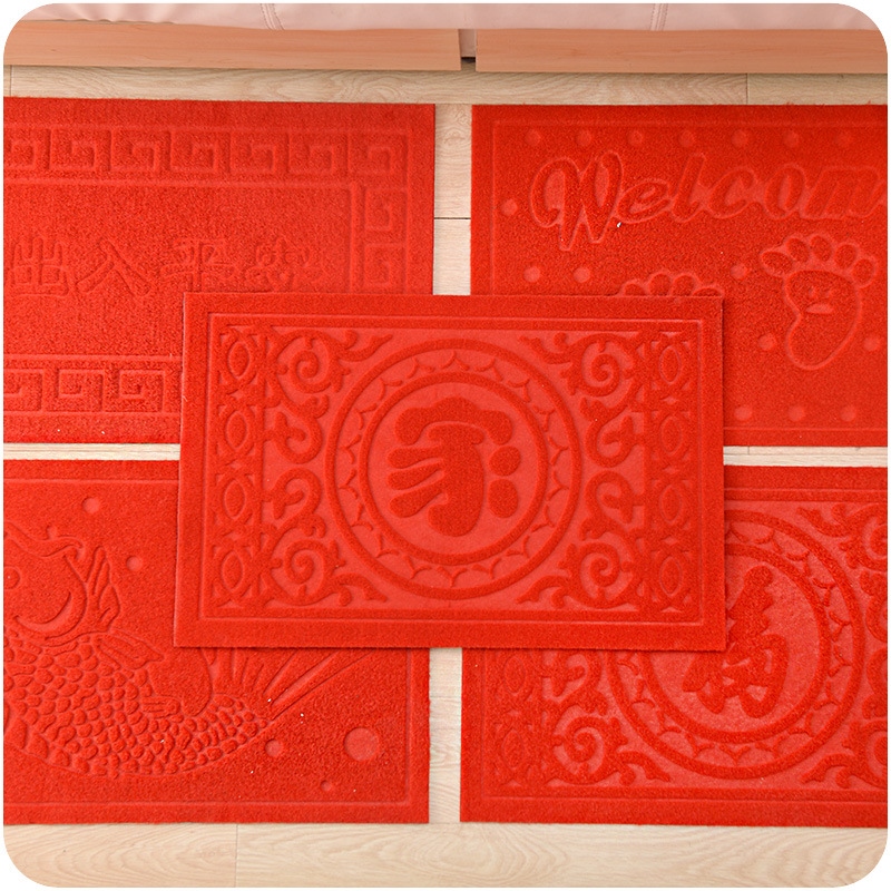 / 加厚防滑出入平安進門地墊福地毯墊家用喜慶紅色腳墊立體印花防水