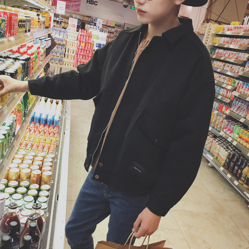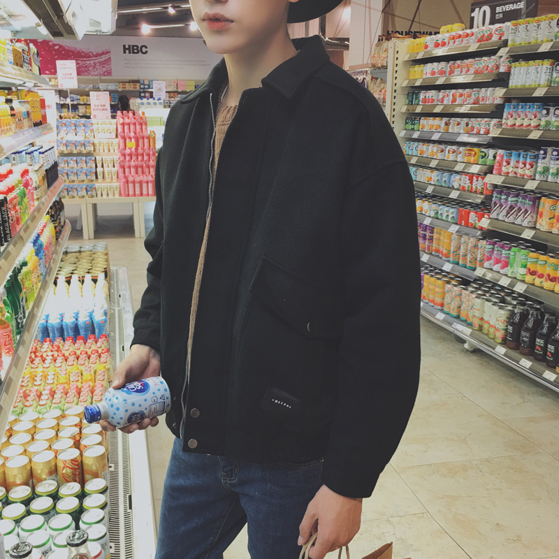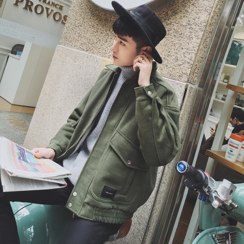 文藝男女店男士加厚毛呢大衣冬季潮流短款夾克休閑男裝修身外套男
