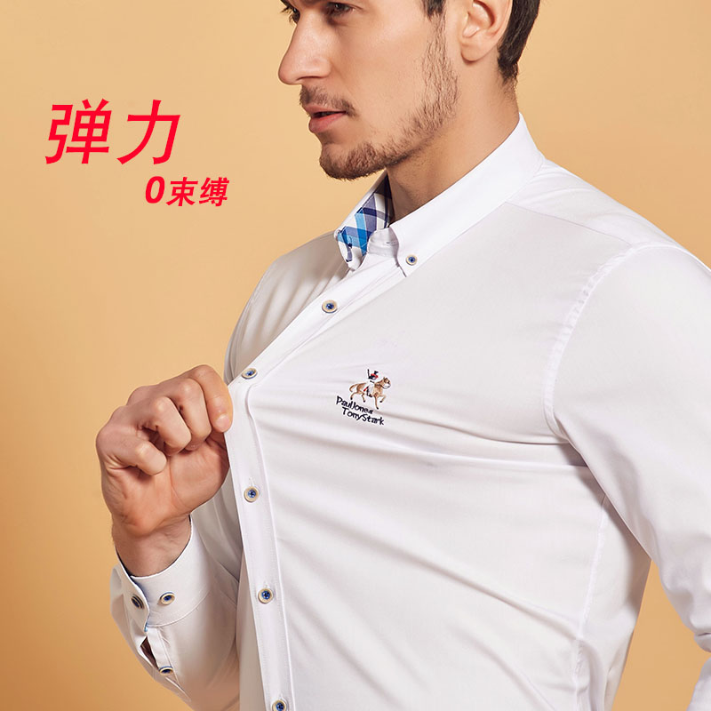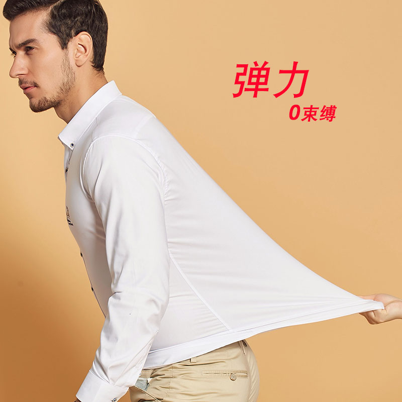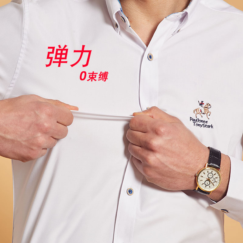 / 夏季薄款純白短袖襯衫扣領商務休閑免燙莫代爾彈力男士半袖襯衣潮