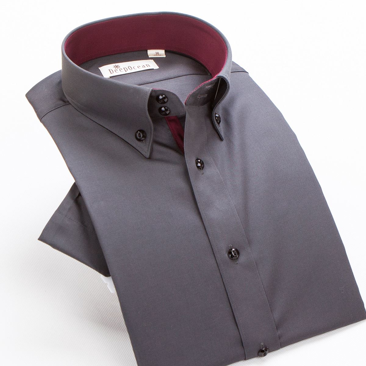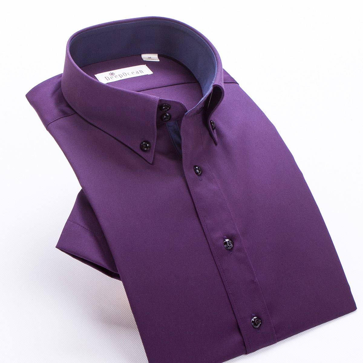 / 純藍色男式半袖襯衫商務絲光棉純棉修身型韓版男夏季短袖男裝襯衣
