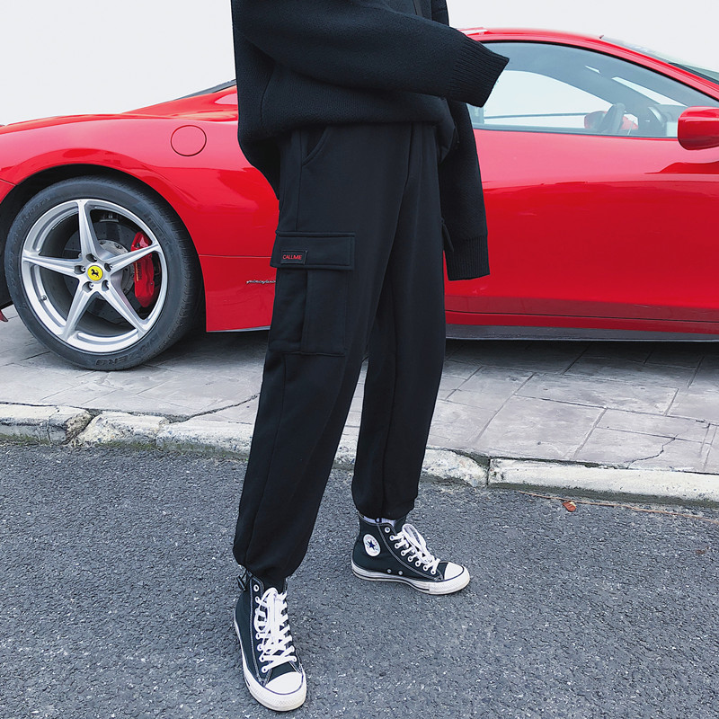 / 文藝男女店冬季加絨加厚休閑褲韓版潮秋季潮牌束腳運動褲男士褲子