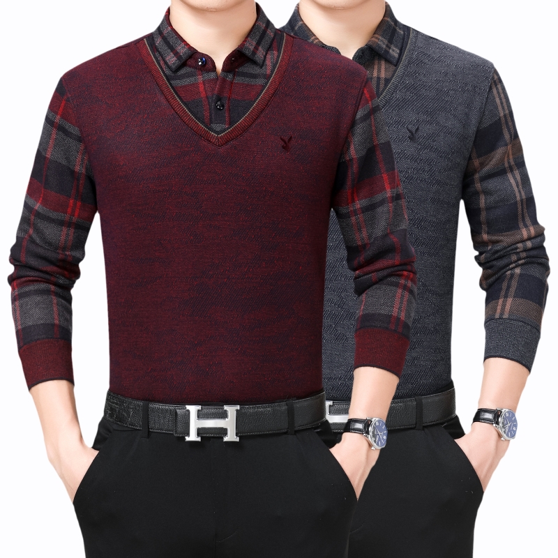 / 花花公子正品中年男士長袖保暖襯衫商務男裝假兩件加絨加厚襯衣冬