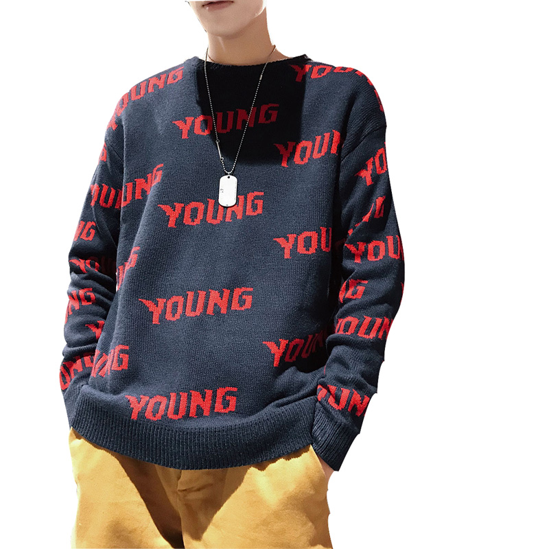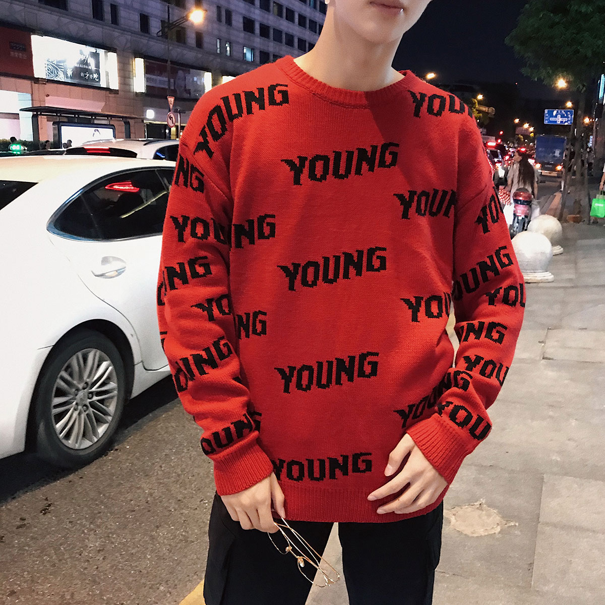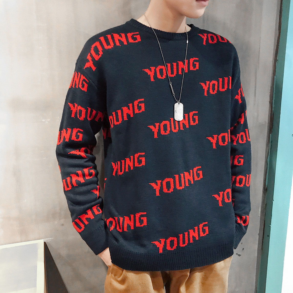 / 男士毛衣新款港風圓領上衣秋季韓版長袖針織衫男裝寬松休閑衣服男