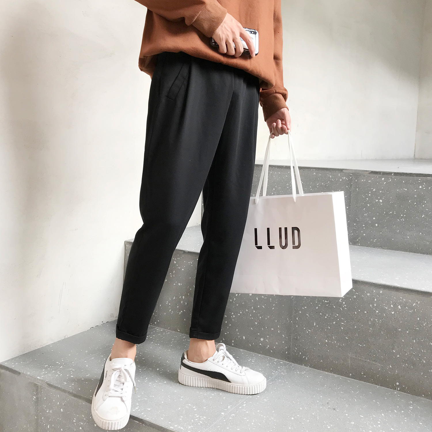 / 文藝男女店秋季男士休閑褲新款韓版潮九分褲秋季潮流直筒褲子男褲