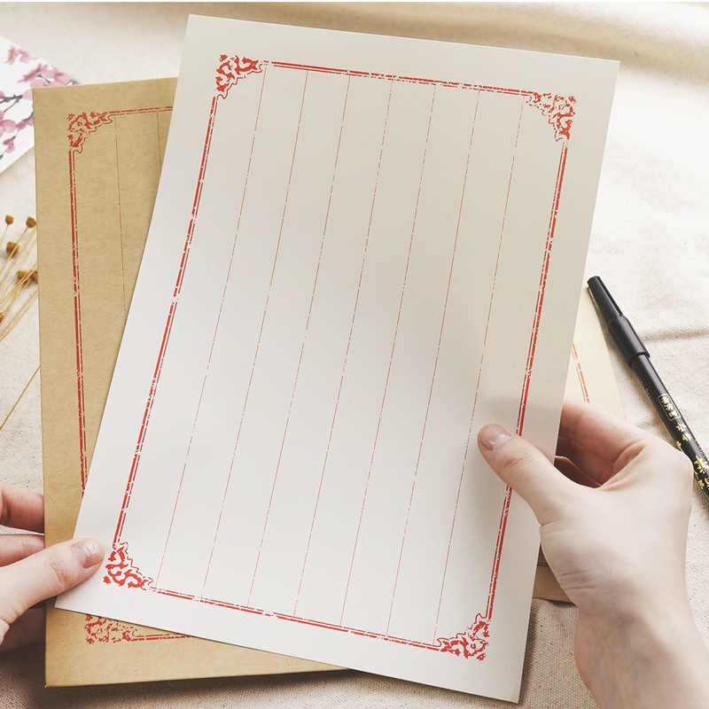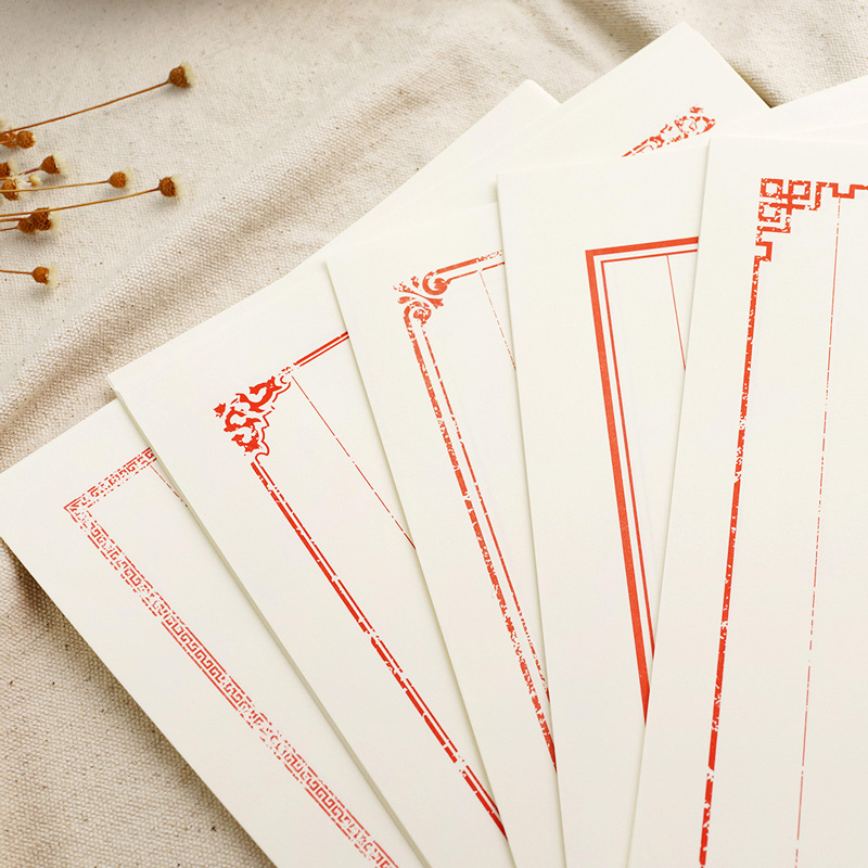 云木雜貨 古典傳統信紙牛皮紙白紙中國風邊框信紙毛筆書寫信紙