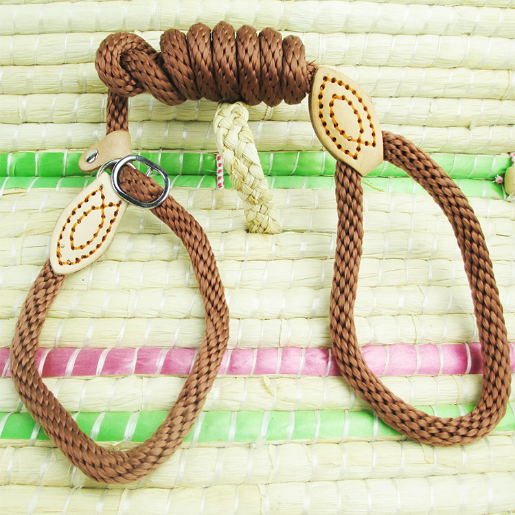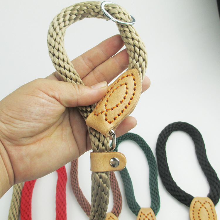 新款麻繩P鏈牽引 配牛皮件舒張鎖緊狗牽引遛狗訓練一拉得現貨批發