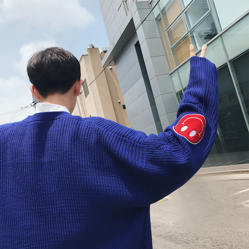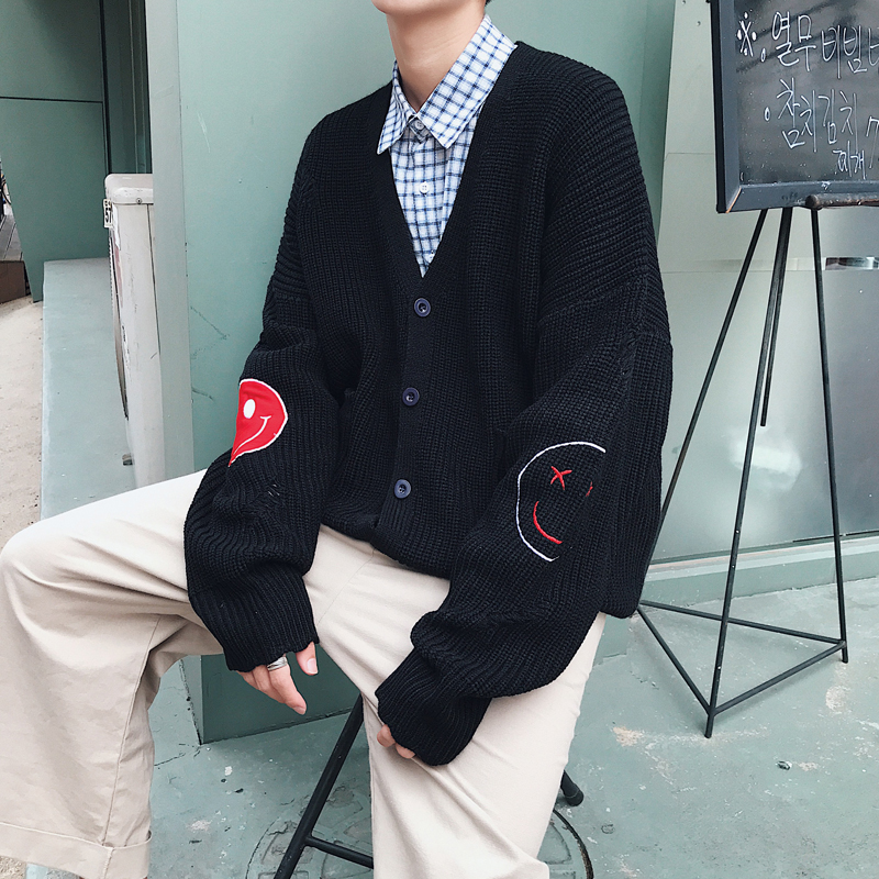 / 文藝男女店繡花毛線開衫男生韓版學生情侶針織衫外套男士潮流毛衣