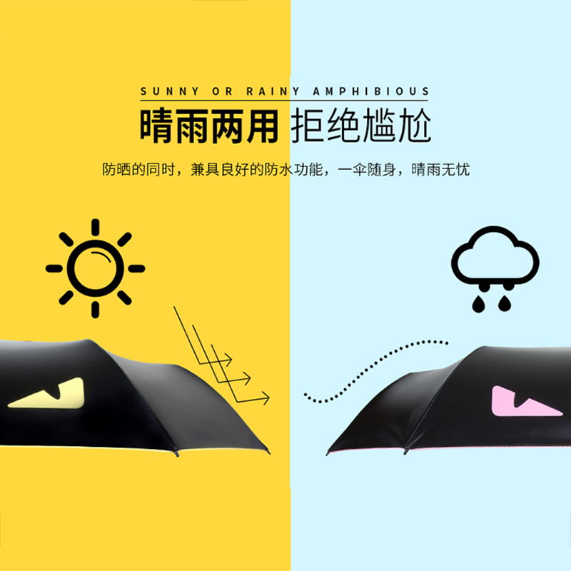 創意黑膠兩用晴雨傘男女折疊三折太陽傘防曬防紫外線遮陽傘超輕小