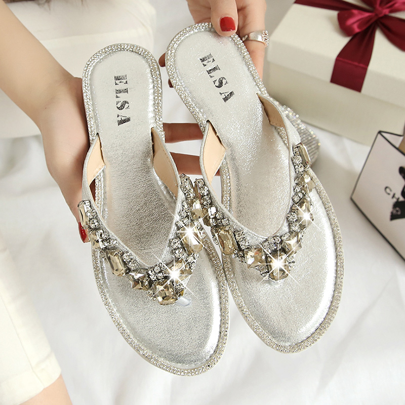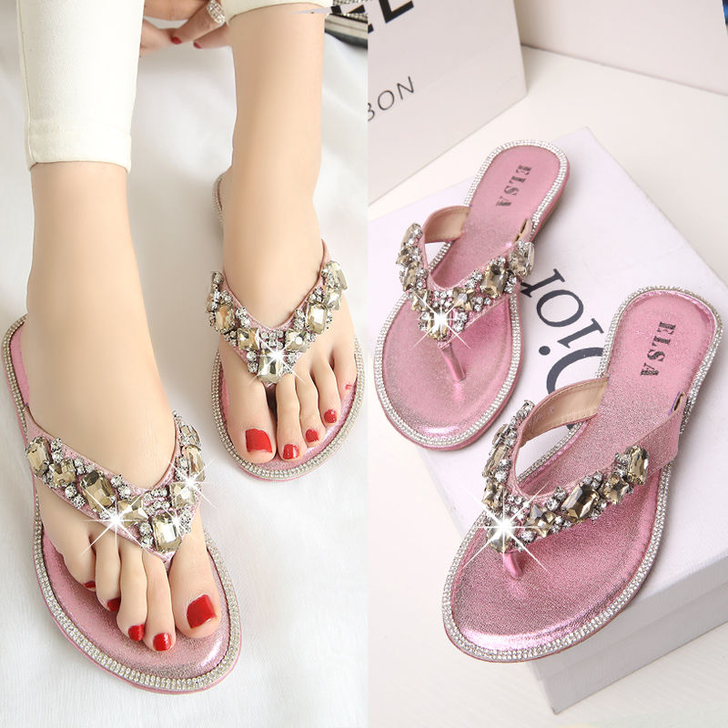 平底拖鞋夏季夾趾涼鞋新款人字平跟坡跟涼拖鞋學生水鉆女涼鞋