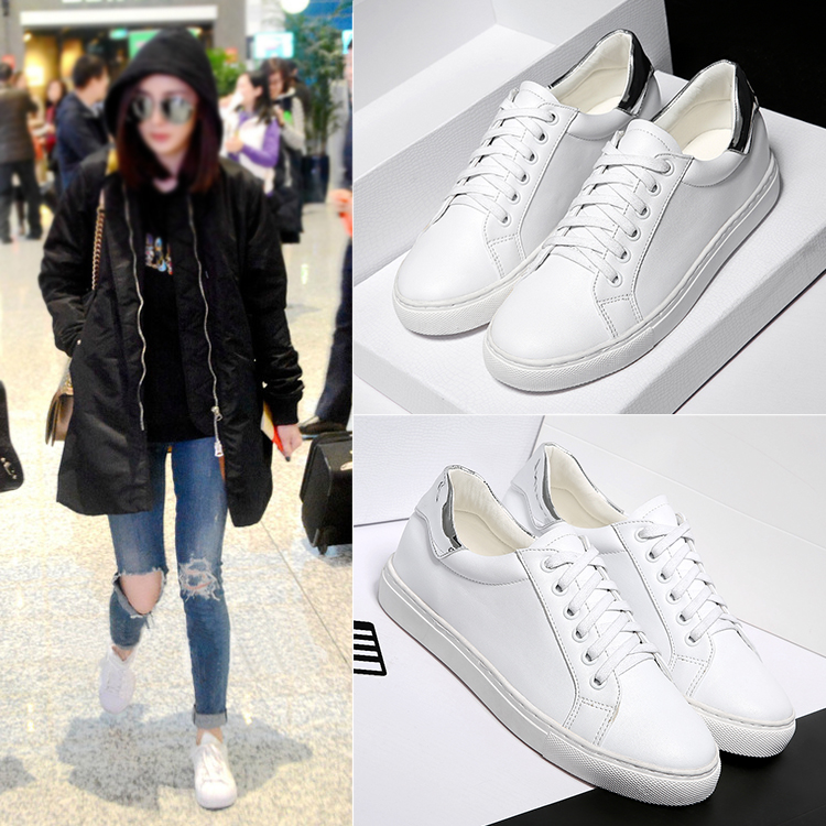春秋新款平底休閑運動鞋女樂福鞋女板鞋厚底系帶小白鞋單鞋潮
