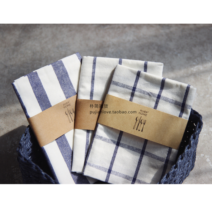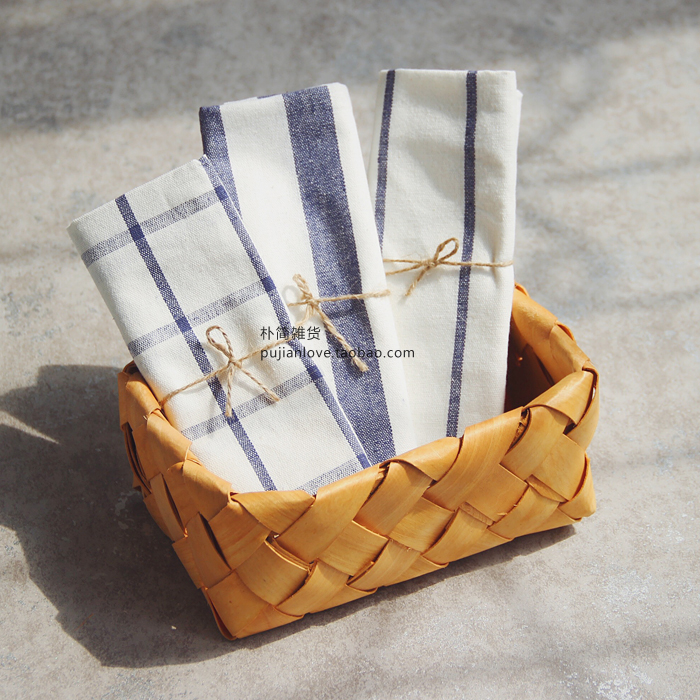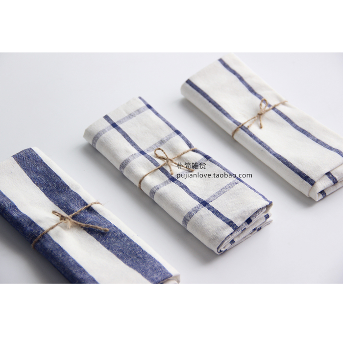 樸簡 日式條紋格子餐墊餐巾 擦碗巾蓋桌布 隔熱墊茶巾 拍攝背景布