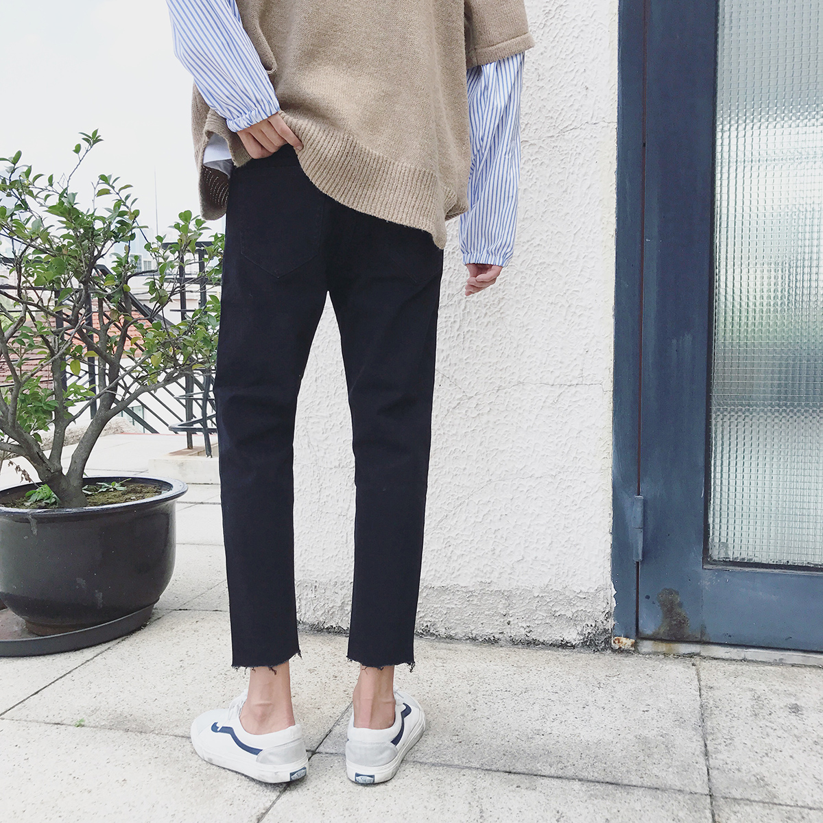 / 文藝男女店男士秋季牛仔褲韓版潮流黑色百搭褲子男學生九分褲男褲