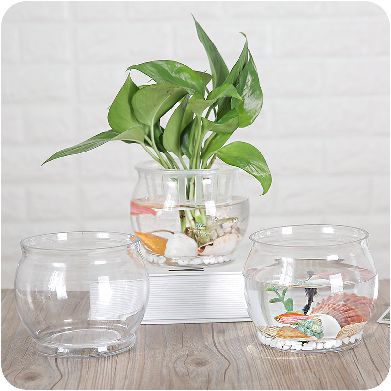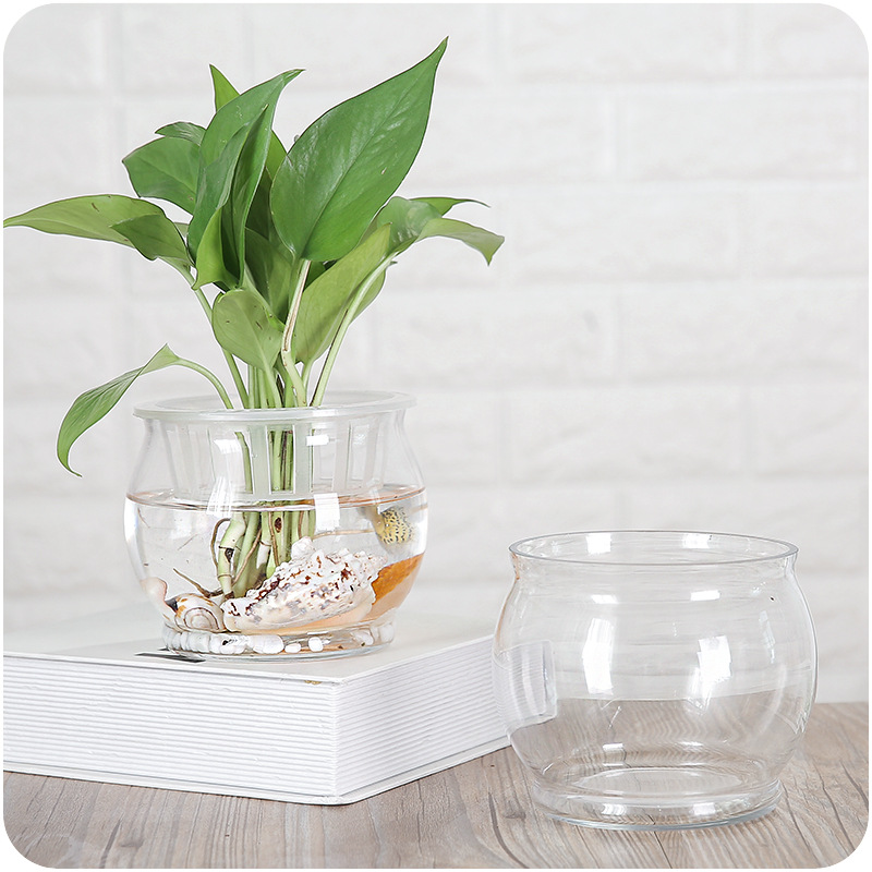 歐式復古簡約大肚小臺球玻璃花盆客廳辦公室平口水培花容器皿養魚