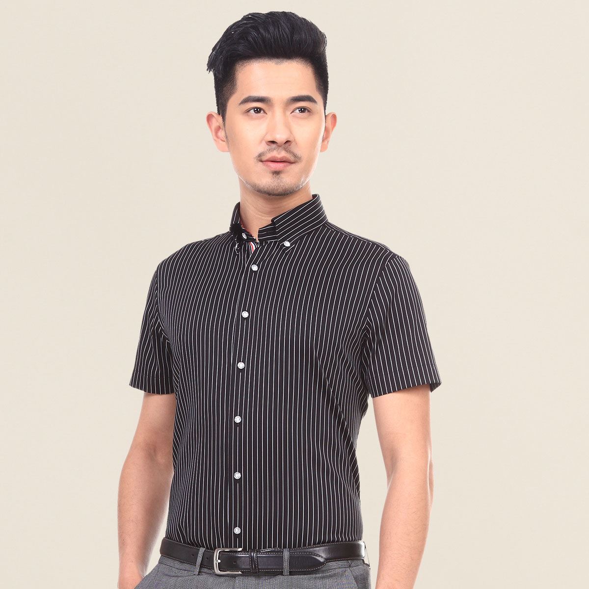 夏季新品絲光棉條紋男士短袖襯衫純棉韓版時尚商務男裝襯衣潮