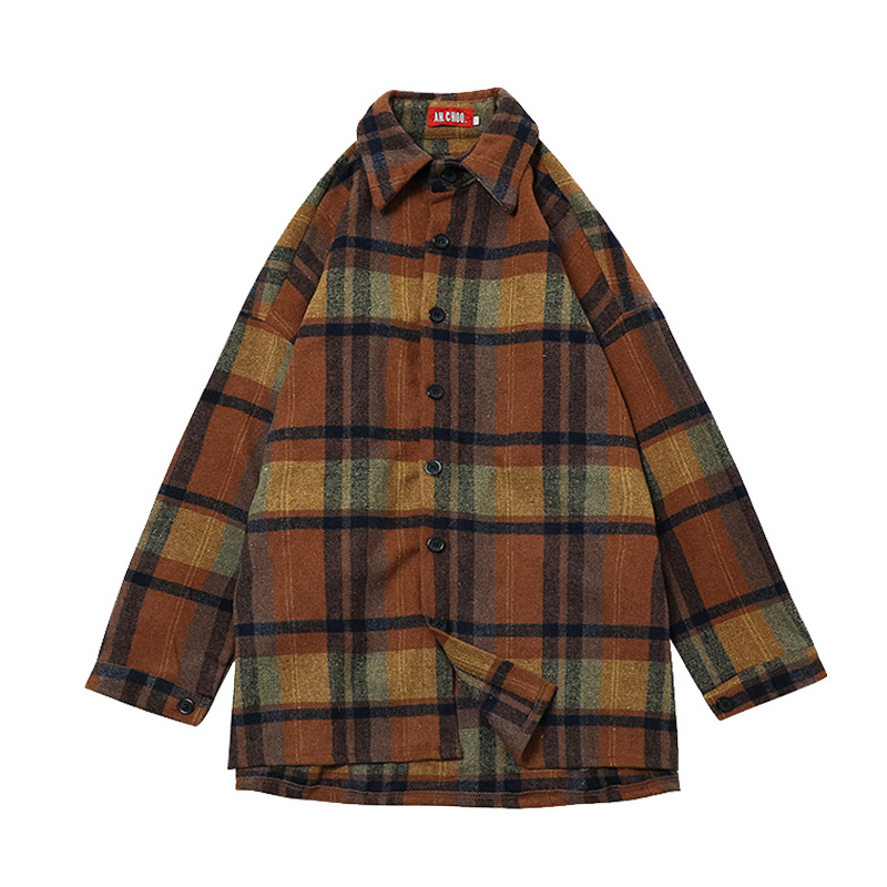 / 原宿風格子男士秋季潮流外套中長款風衣韓版款休閑男裝夾克情侶裝