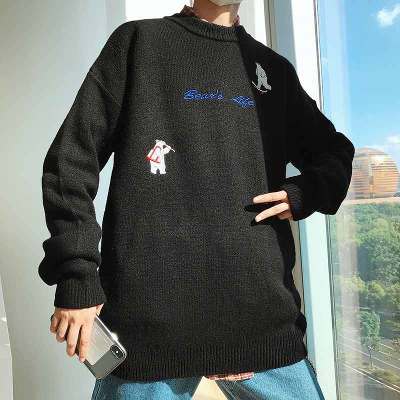 / 冬季男士針織衫潮流寬松毛衣半高領韓版線衣ins超火的chic學院風
