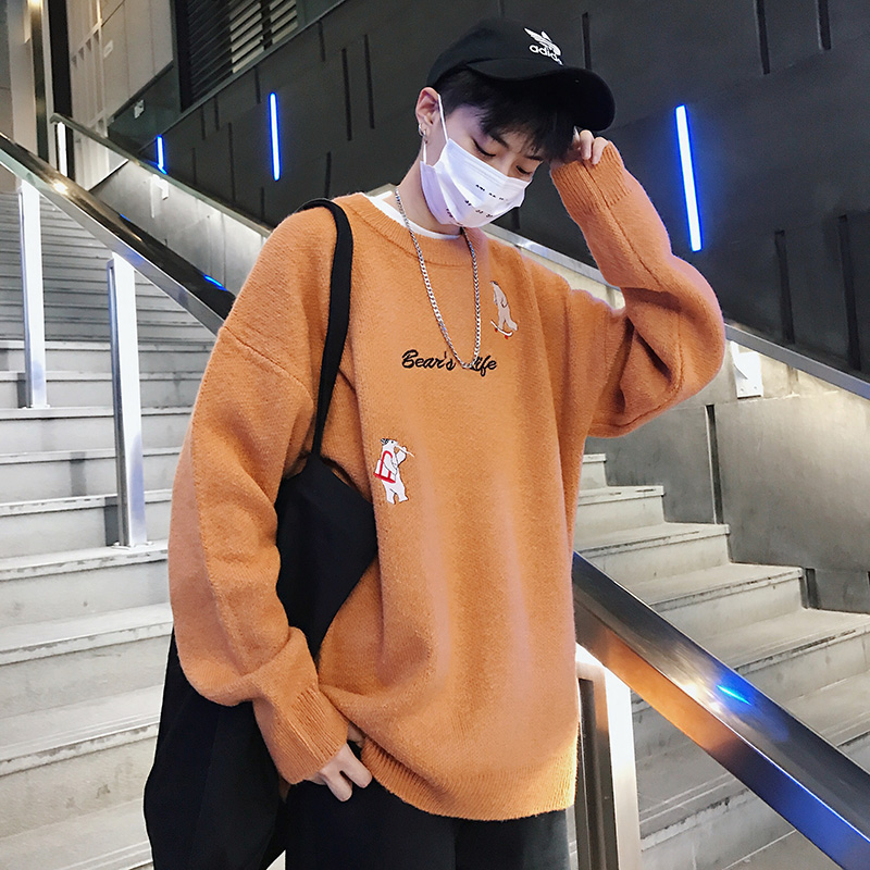 冬季男士針織衫潮流寬松毛衣半高領韓版線衣ins超火的chic學院風