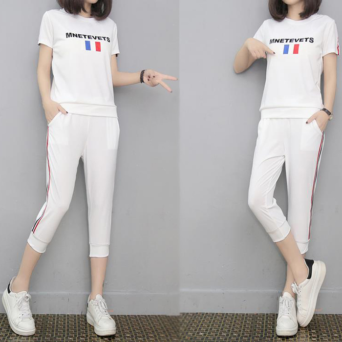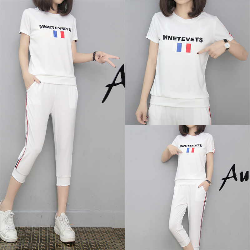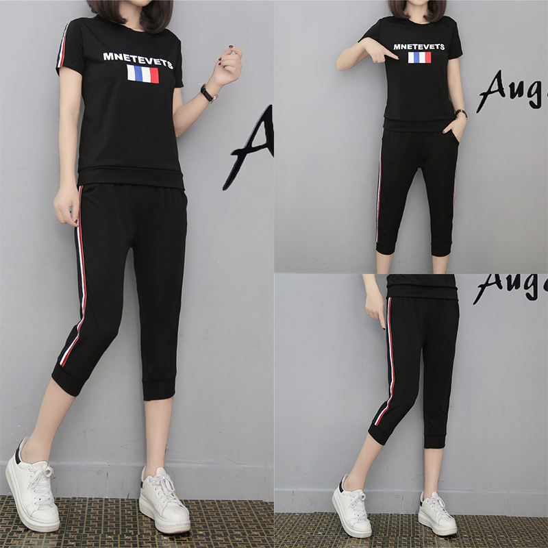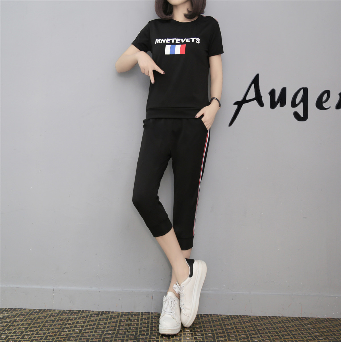 / 初中高中學生夏裝運動套裝女2017寬松短袖t恤七分褲休閑兩件套潮