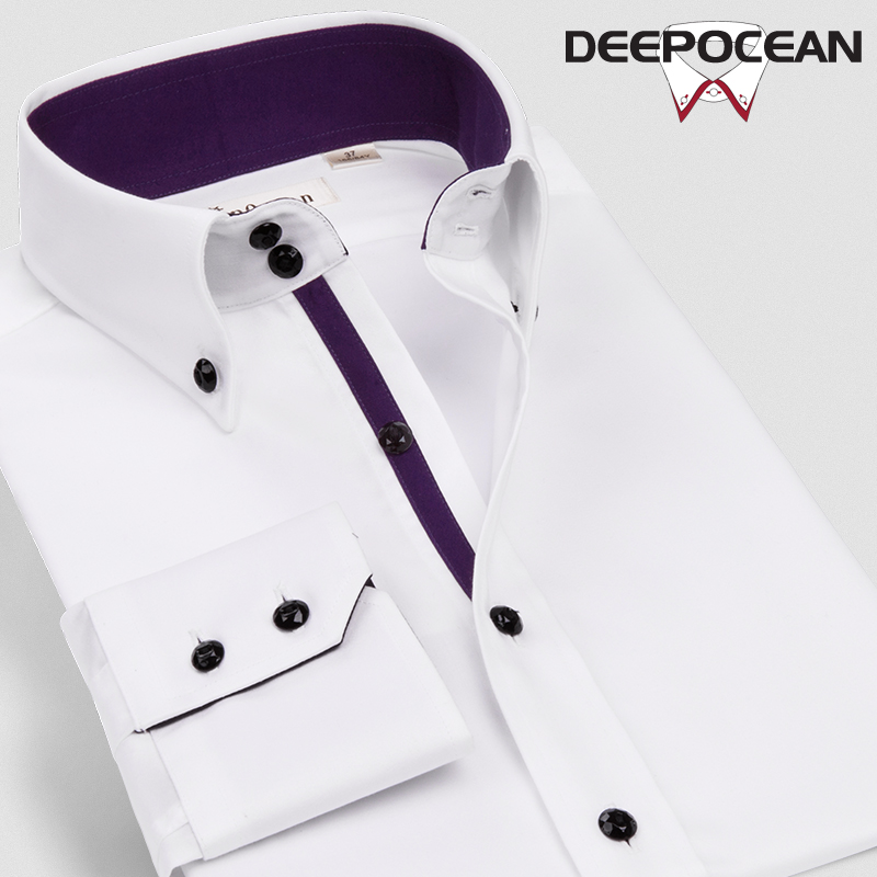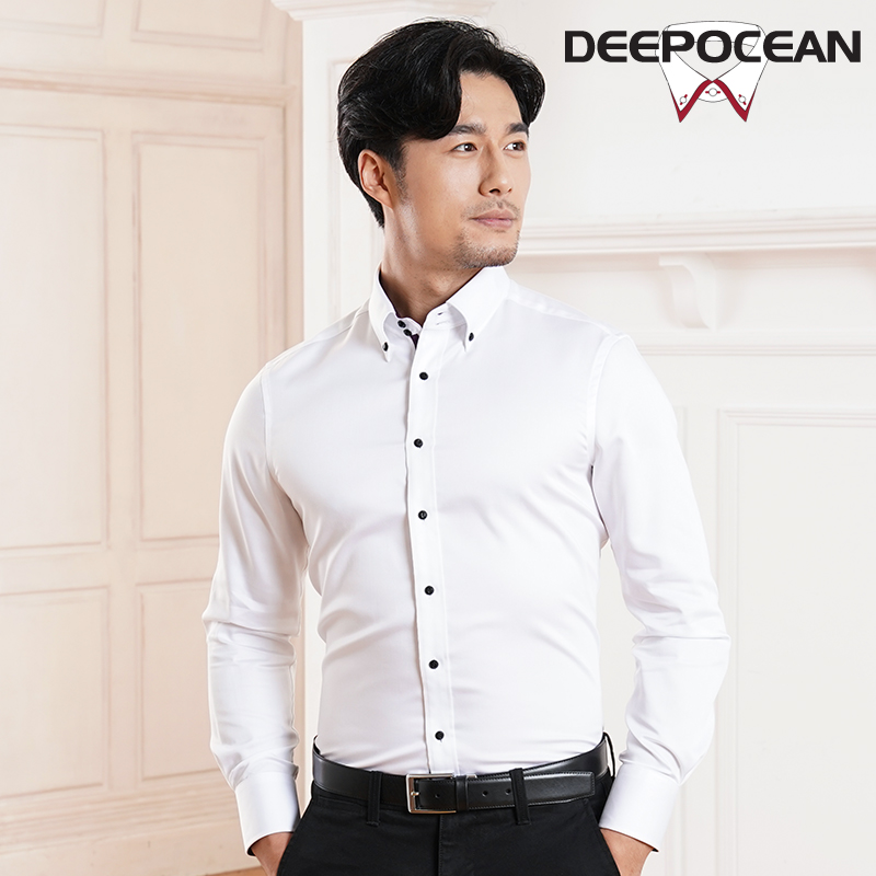 / 深海白襯衫男長袖韓版純色修身商務休閑絲光棉免燙潮流純棉襯衣寸