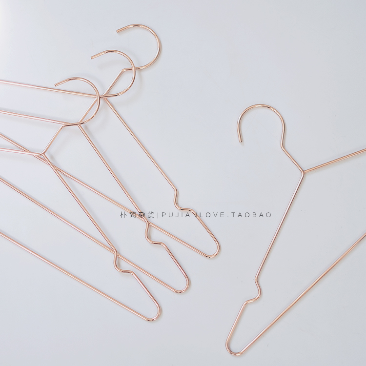 樸簡|北歐H款玫瑰金色晾衣架子 簡約文藝金屬掛衣架5支裝