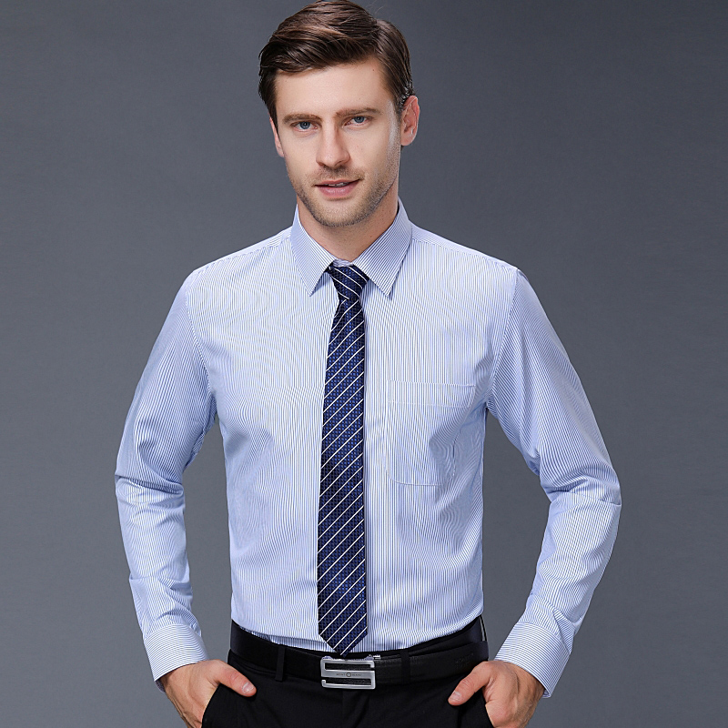 / 秋裝新款品牌中年男士長袖襯衫商務休閑男裝條紋純棉免燙襯衣薄款