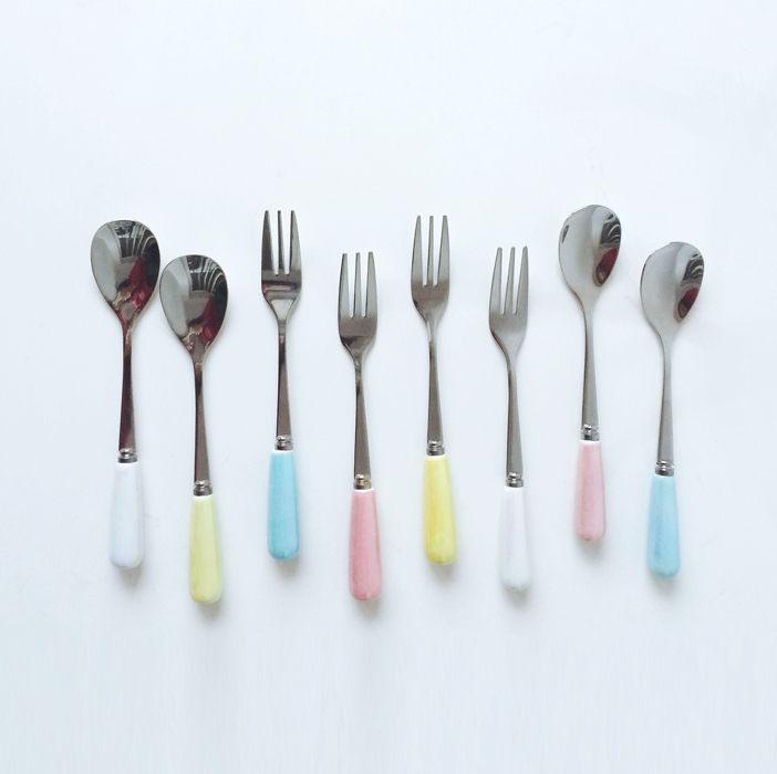 日式馬卡龍色刀叉勺 不銹鋼西餐餐具套裝 面包刀甜品叉勺 水果叉