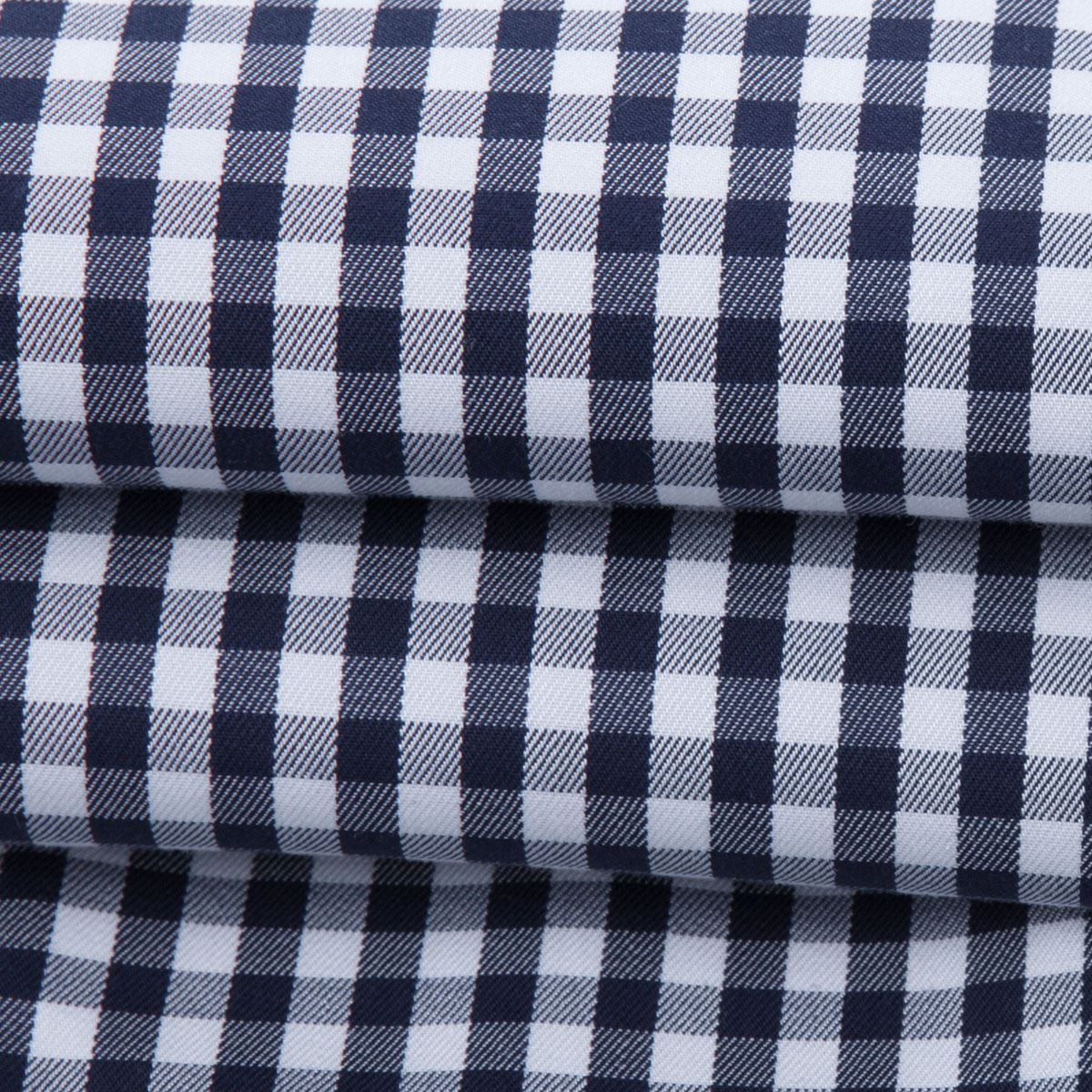 / 深海藍白小格子襯衫長袖男士休閑黑白色格子襯衣韓版修身純棉免燙