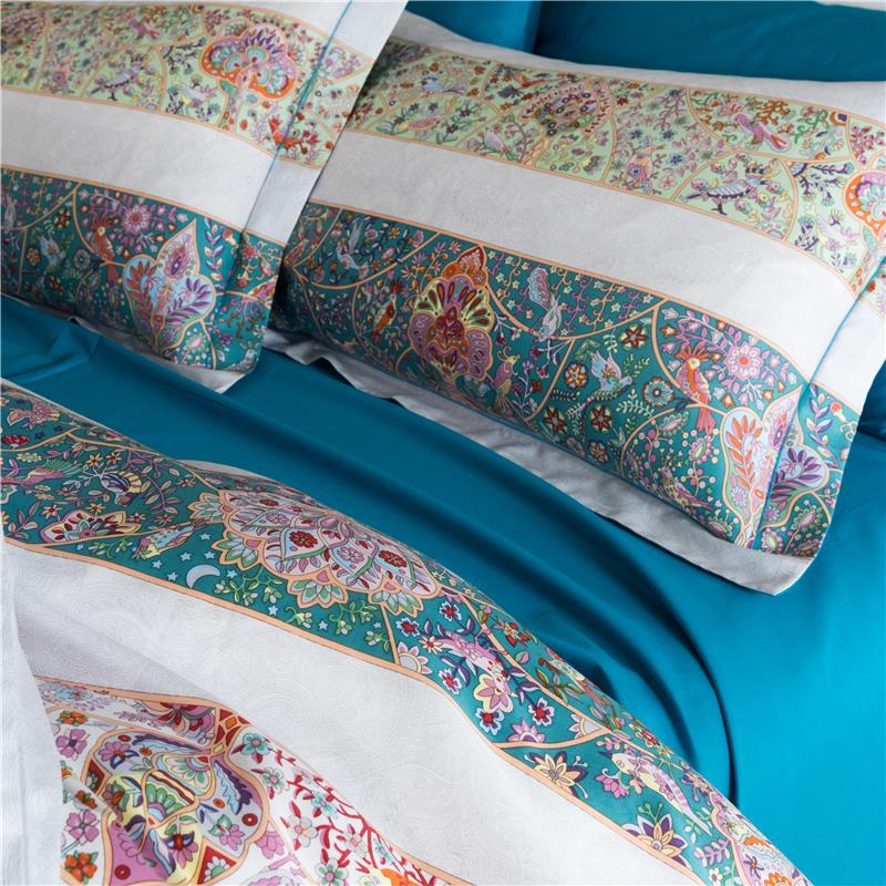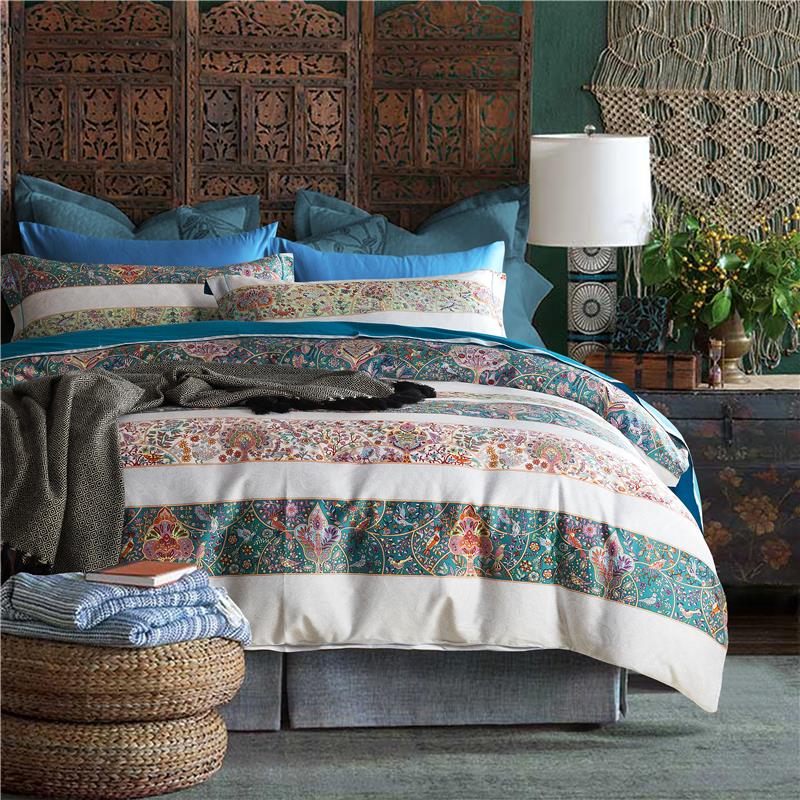 冬季上新拼接民族風格大彩60支長絨棉貢緞四件套蓄熱保暖套件