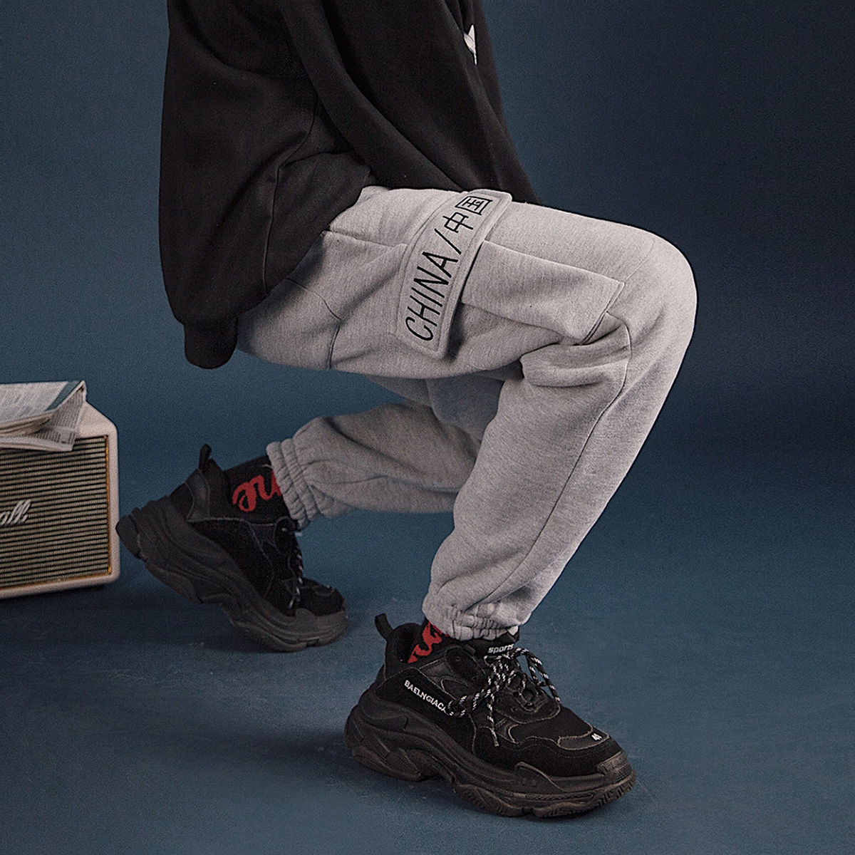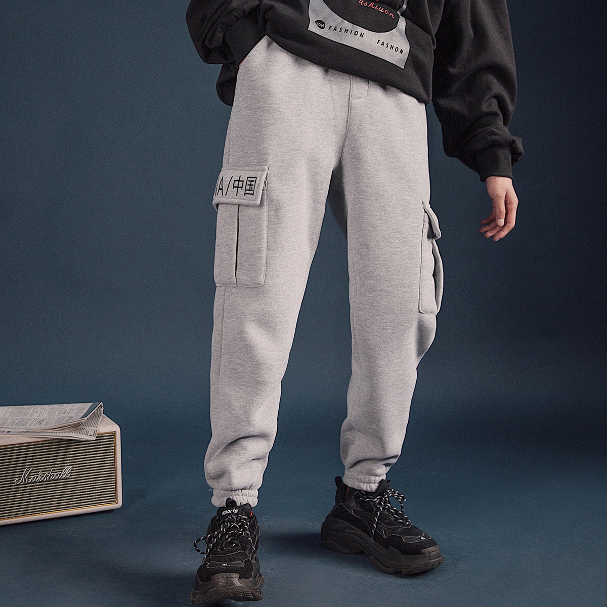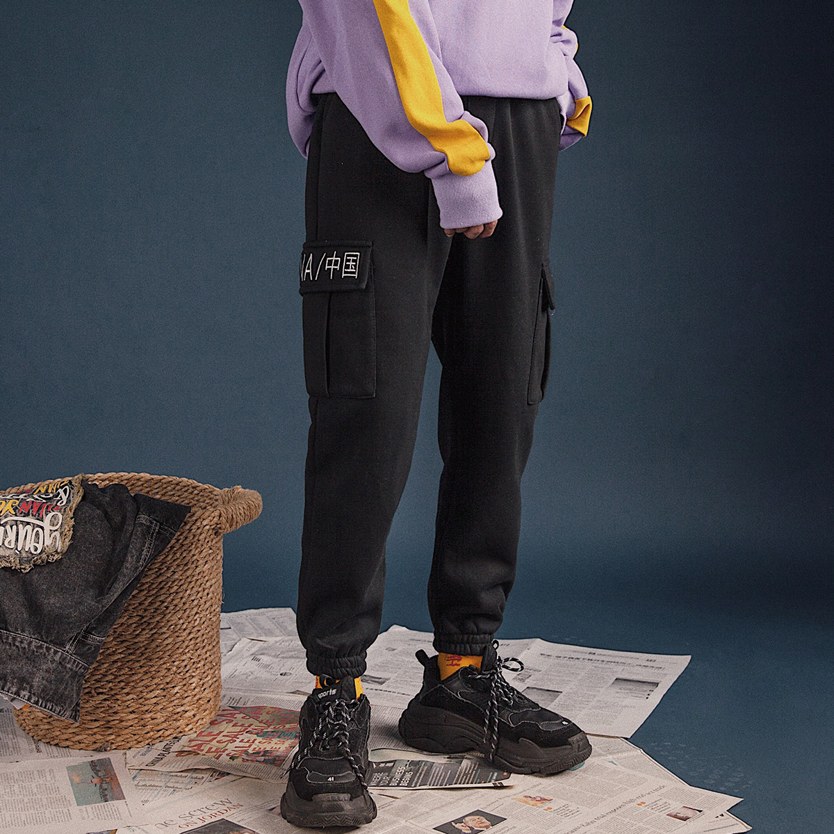 / 文藝男女店男士褲子休閑褲韓版潮流冬季加絨加厚工裝褲秋季運動褲
