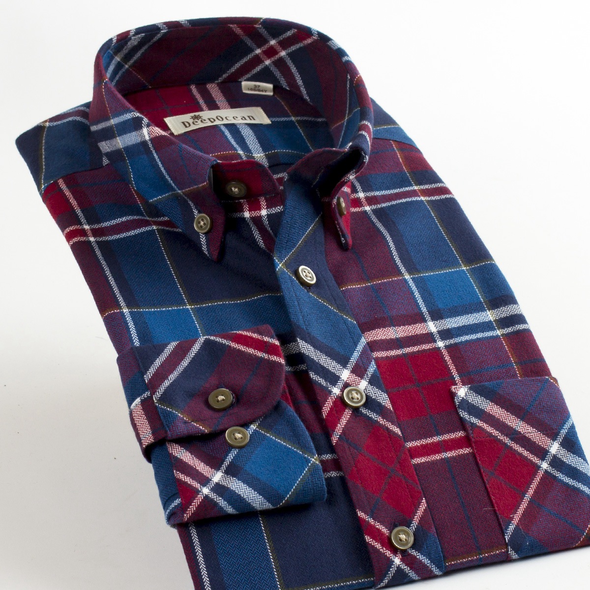 DEEPOCEAN2015秋新款男士長袖格子襯衫保暖加厚彩格絨修身襯衣