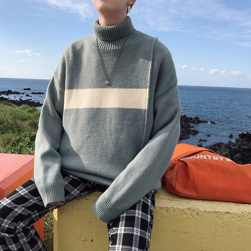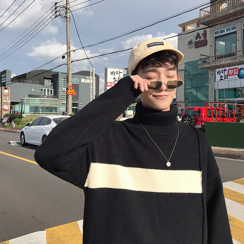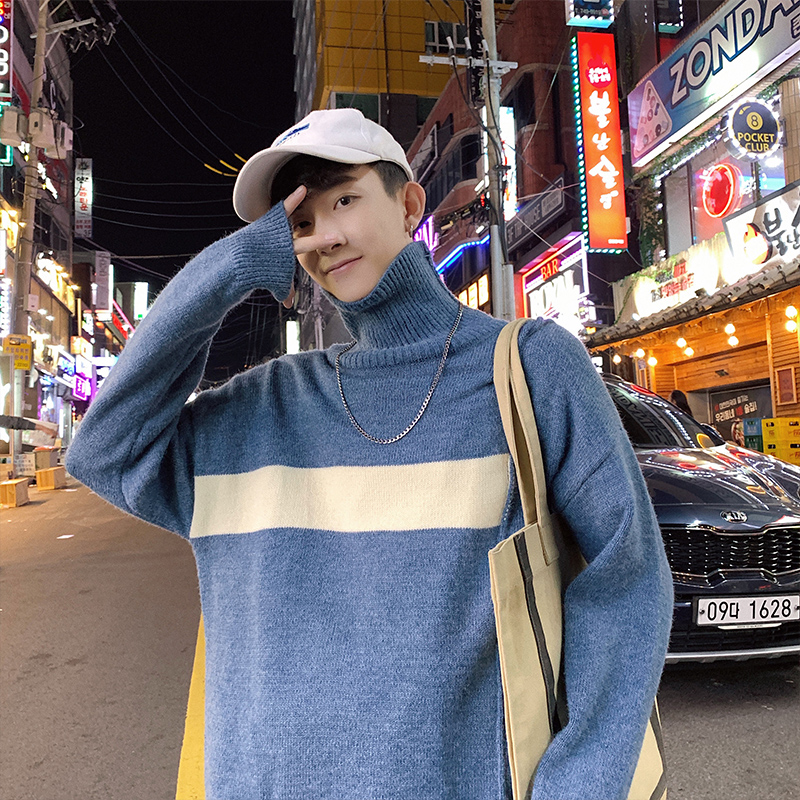 文藝男女店毛衣男士韓版潮流高領毛線衣冬季套頭針織衫學生外套男