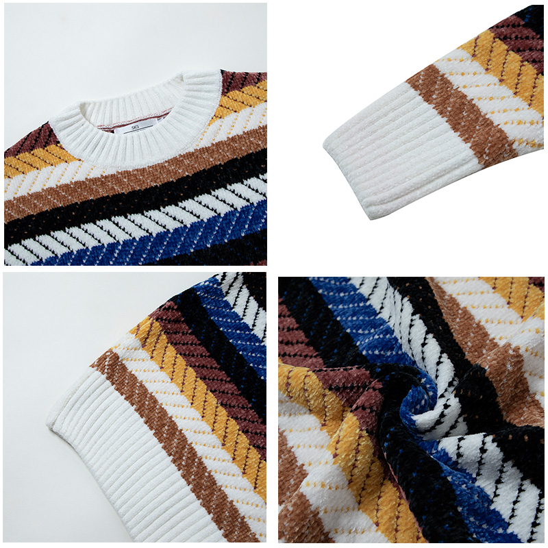 / 新款條紋男士毛衣秋季寬松休閑長袖針織衫韓版潮港風男裝潮流衣服